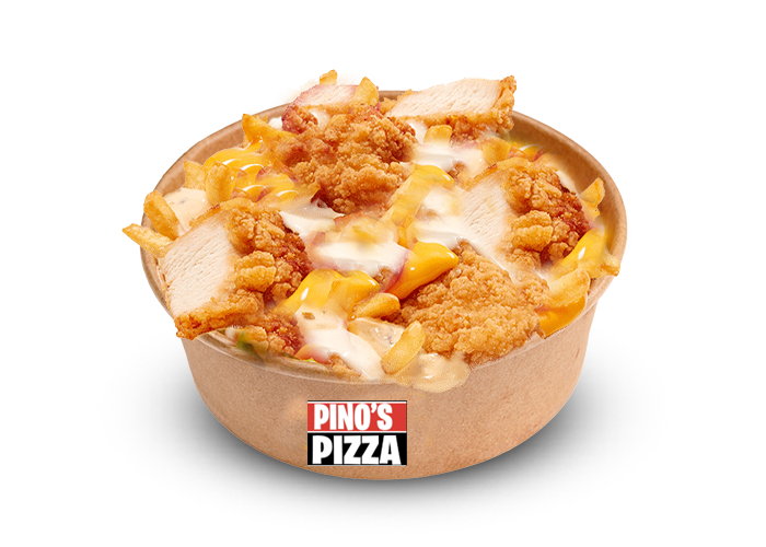 Frites, tenders, sauce fromagère + Sauce au choix.