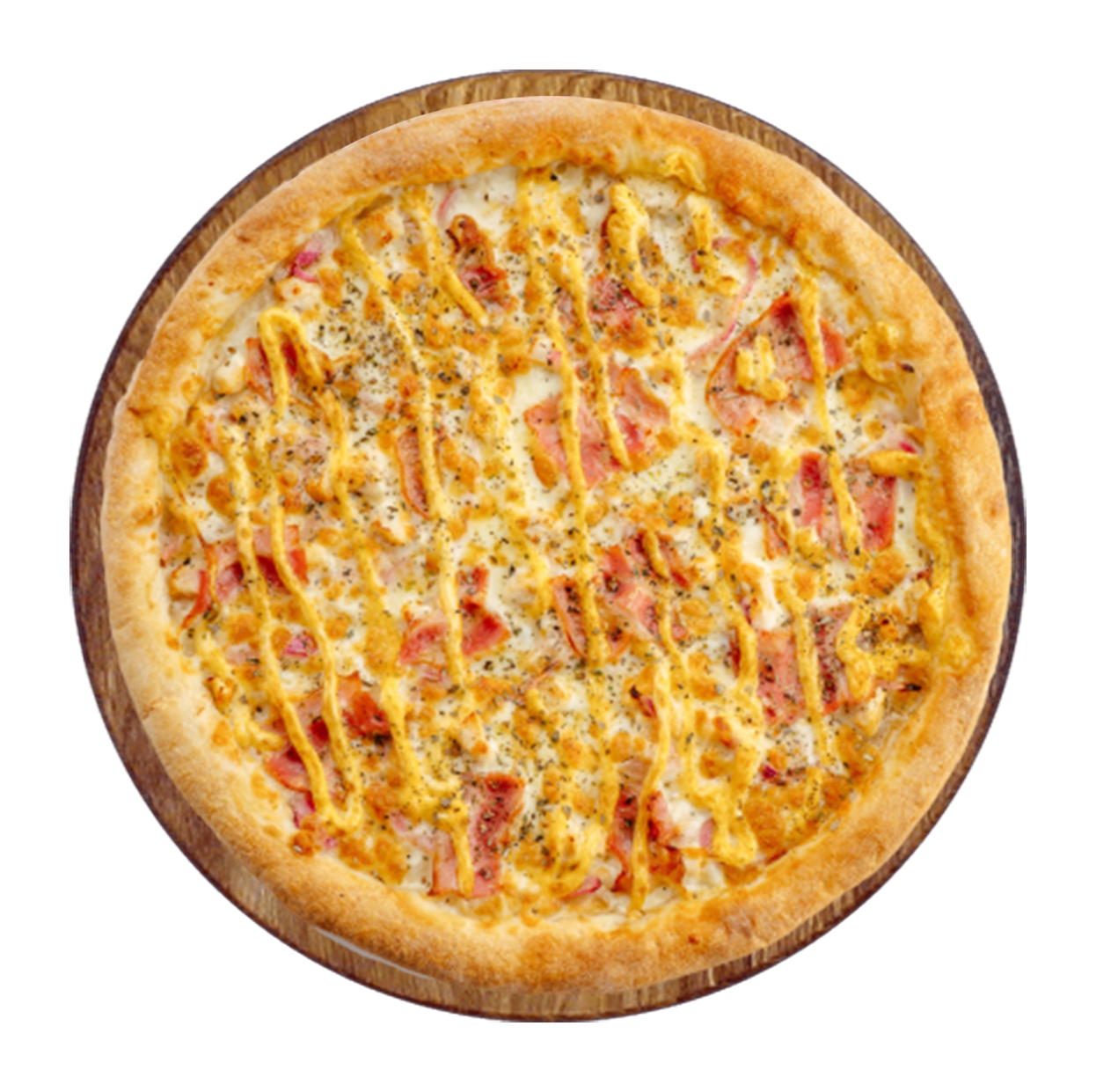 Crème fraîche, fromage, jambon, poivrons, raclette, oignons.